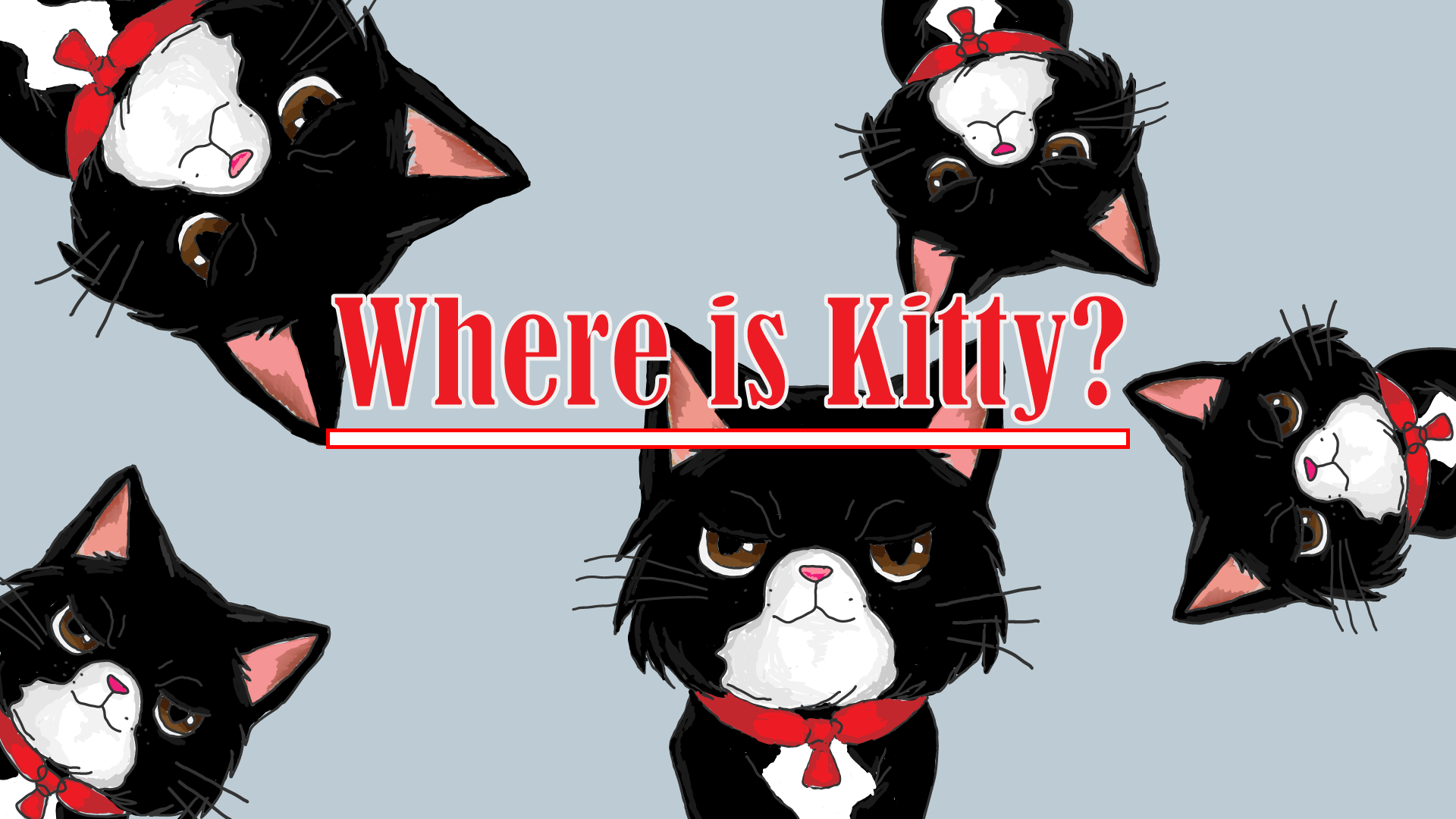 Where is Kitty? is about a naughty kitty named Mr Whiskers. Mr Whiskers does NOT enjoy being touched by his owner who loves cuddles, so Mr Whiskers likes to hide from his owner. Can you help Mr Whiskers' owner find him?
